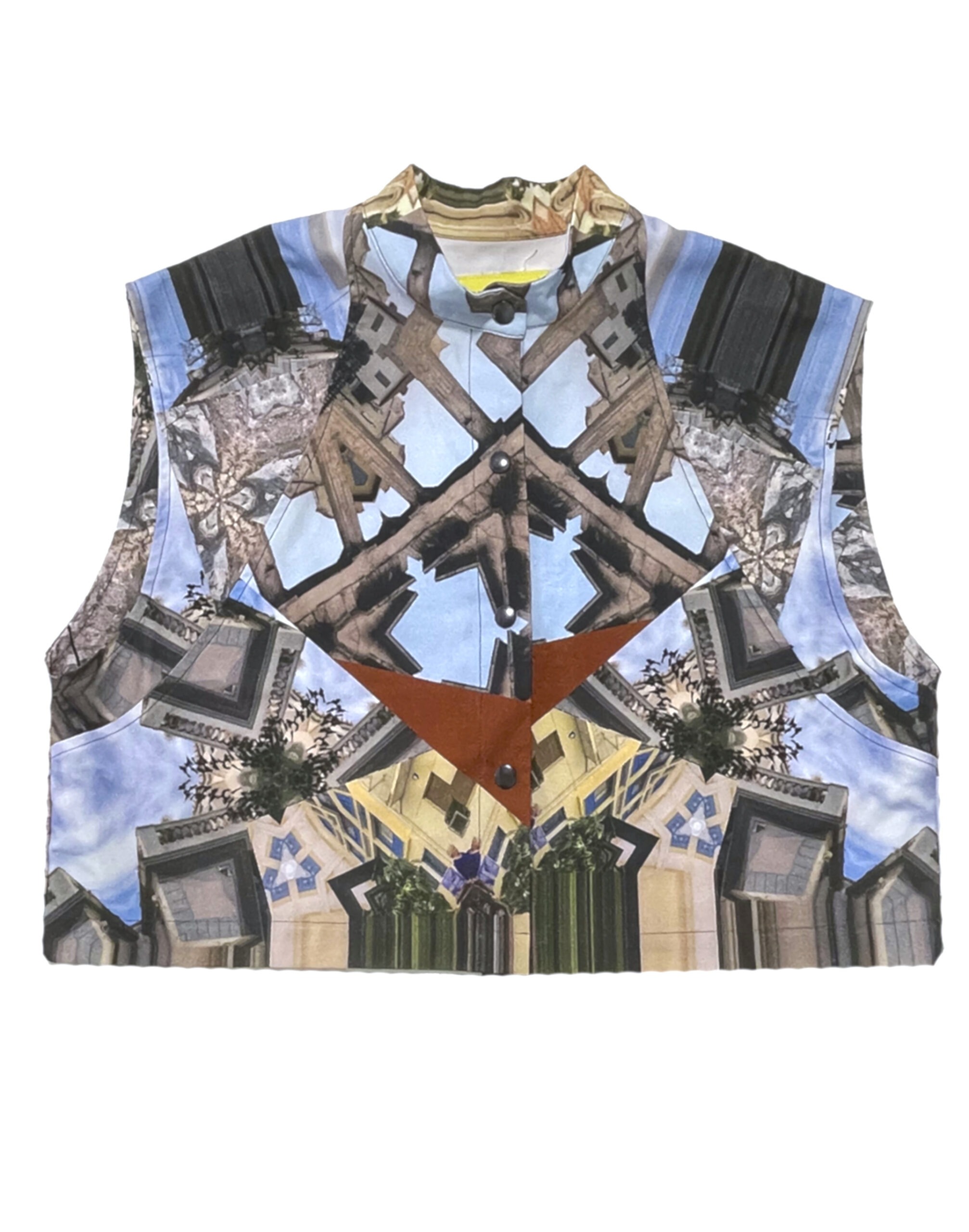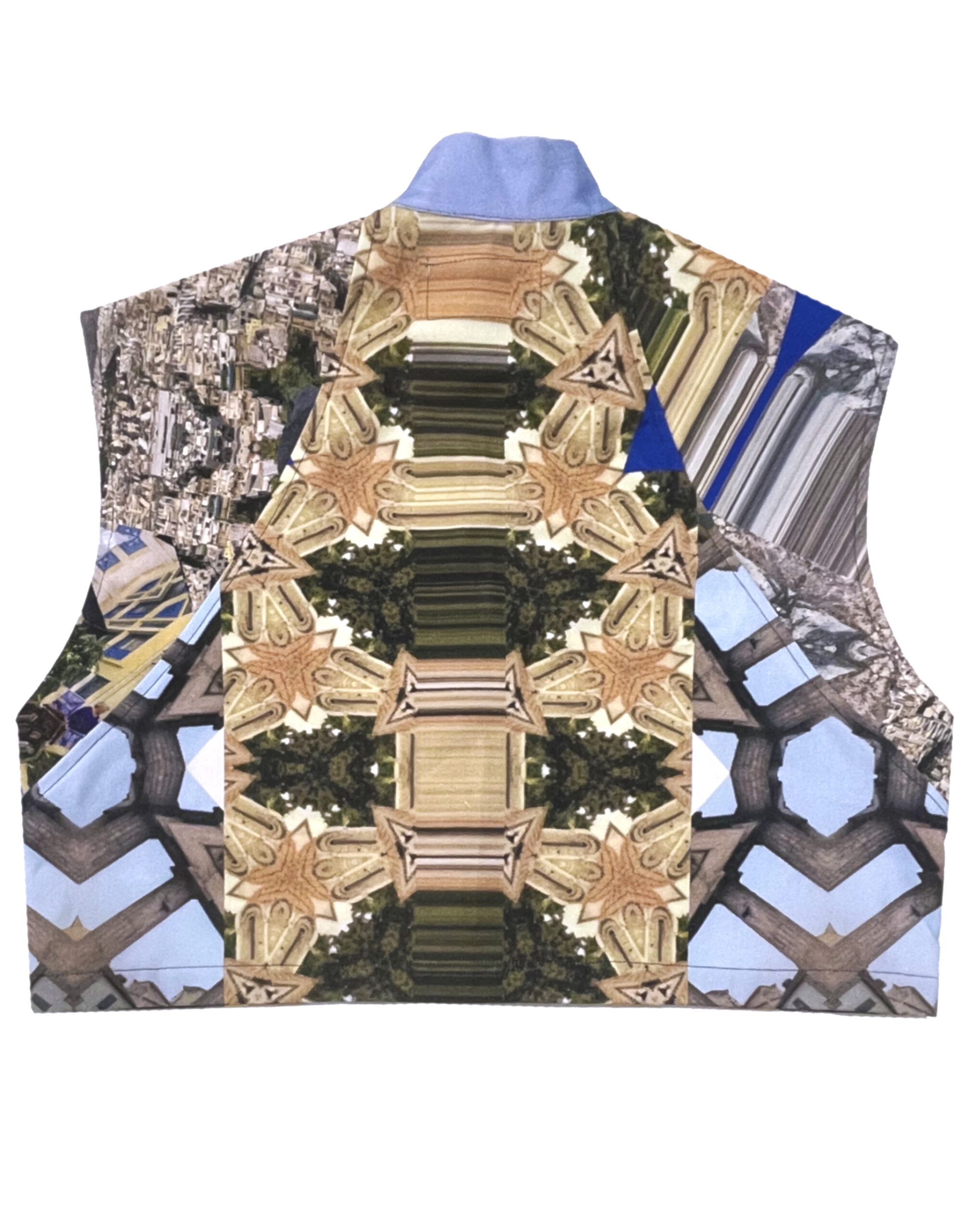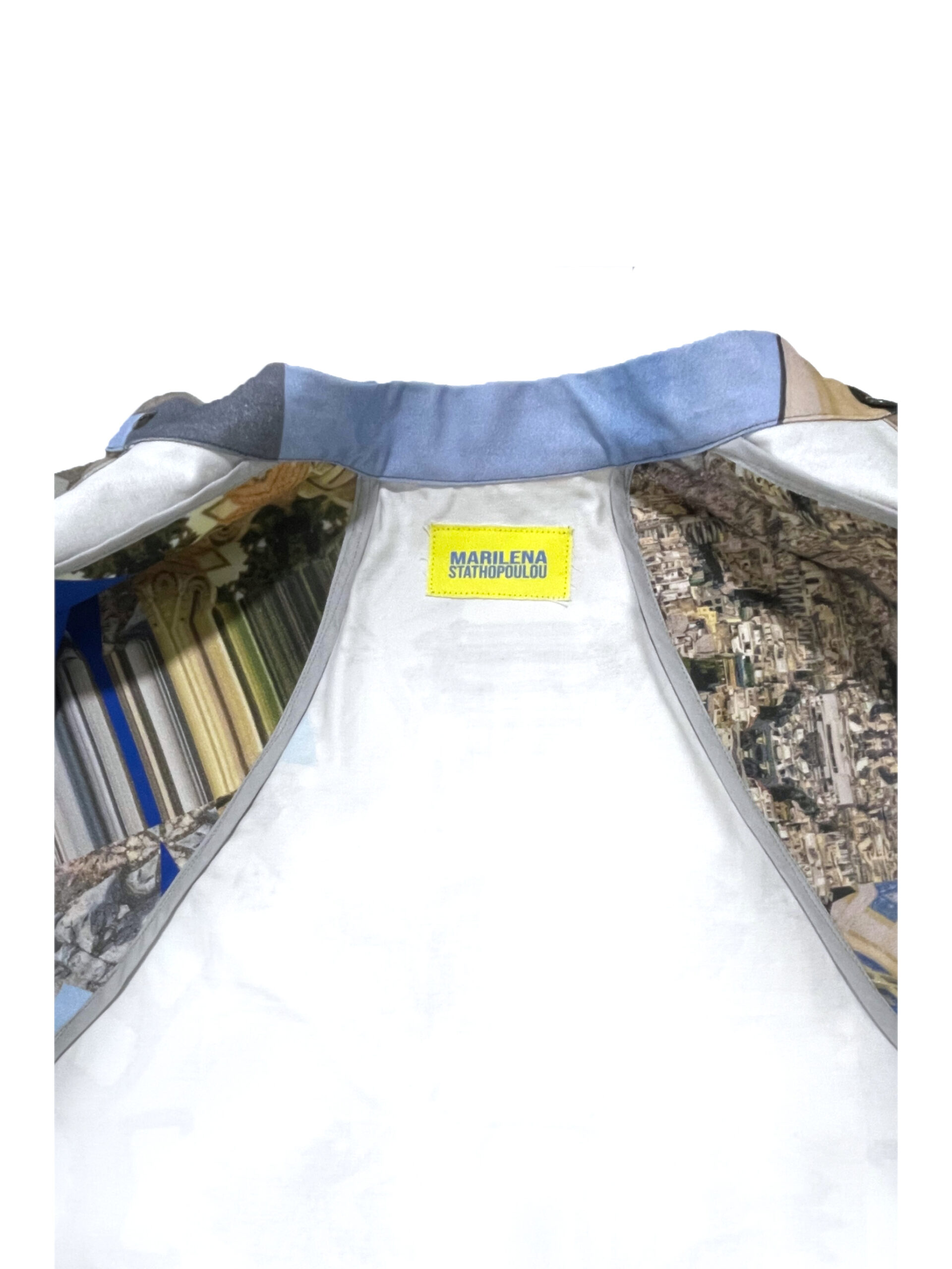 Short oversized vest  of Agora print, depicting scenes from Athens through the kaleidoscope.
