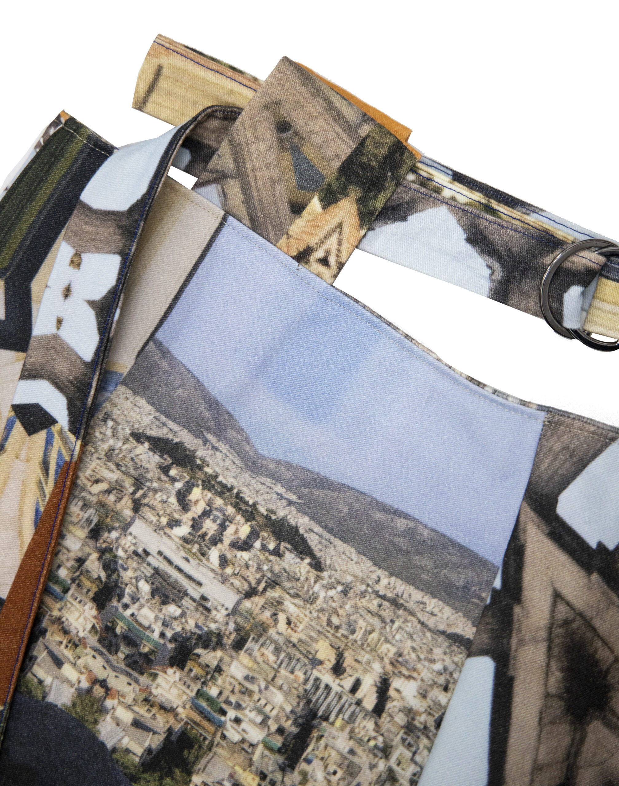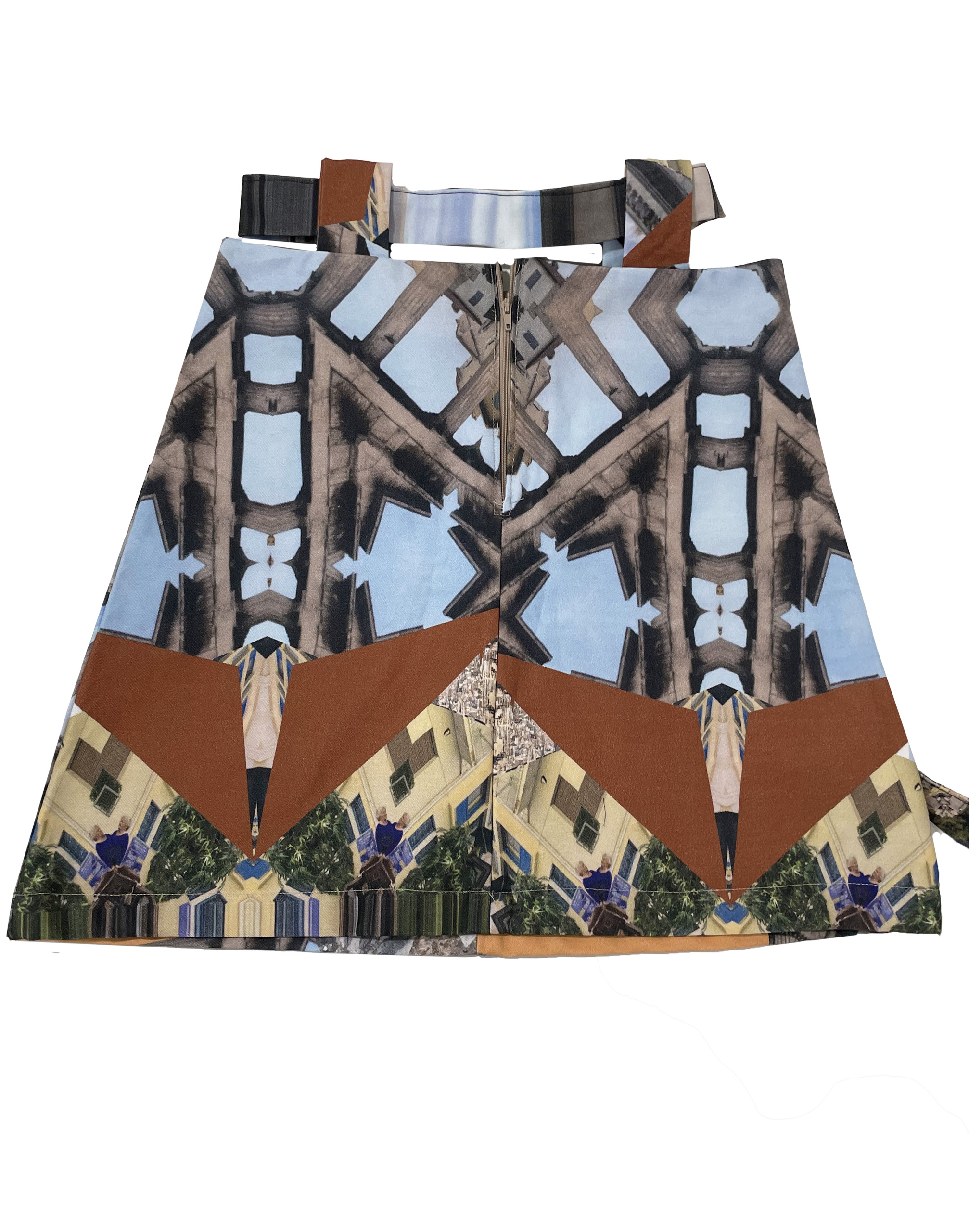Mini wrap skirt in Agora print. From the collection Kaleidoscope Athena, depicting scenes from Athens through the kaleidoscope.